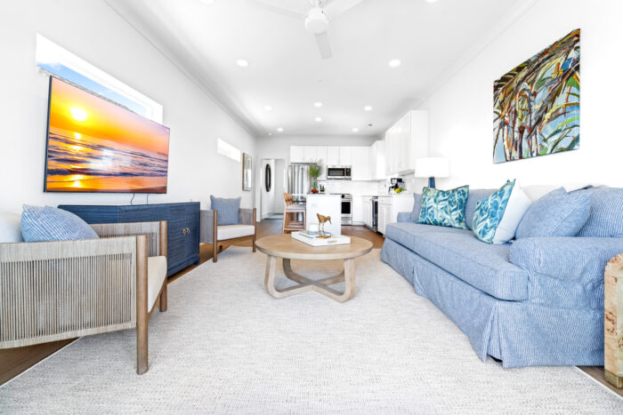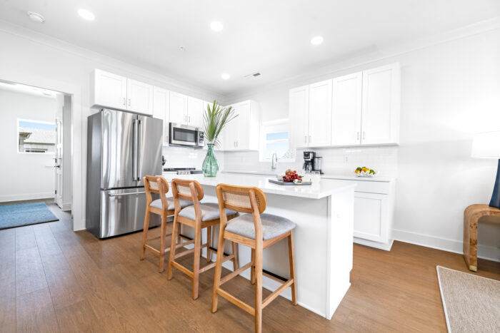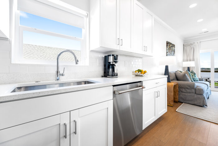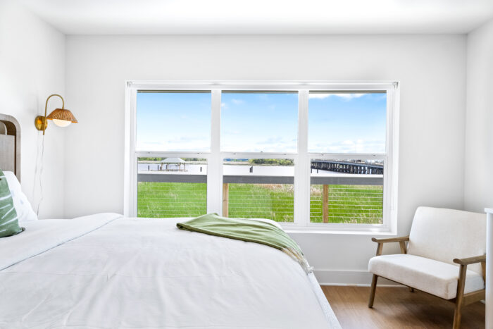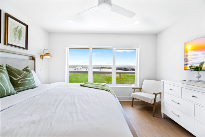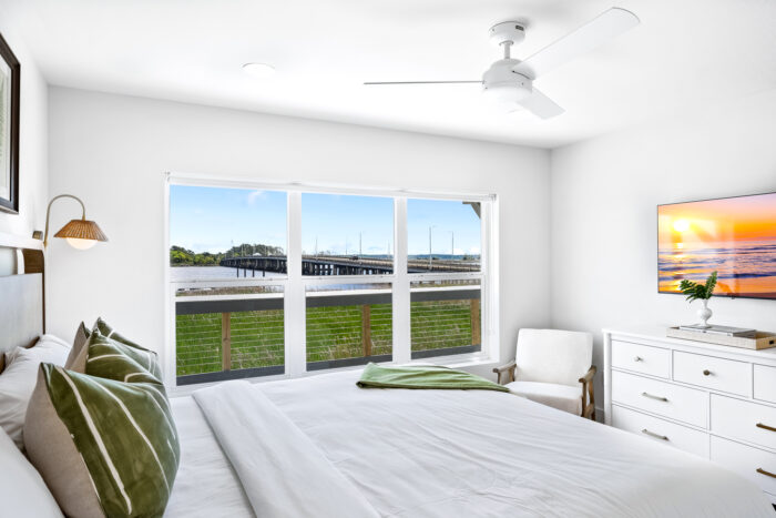 Guests can also enjoy a refreshing outdoor pool, a custom bar and gathering space, and a private dock. From slow, coffee-filled mornings to sunset cocktails by the water, every moment here feels like a getaway you’ll never forget.